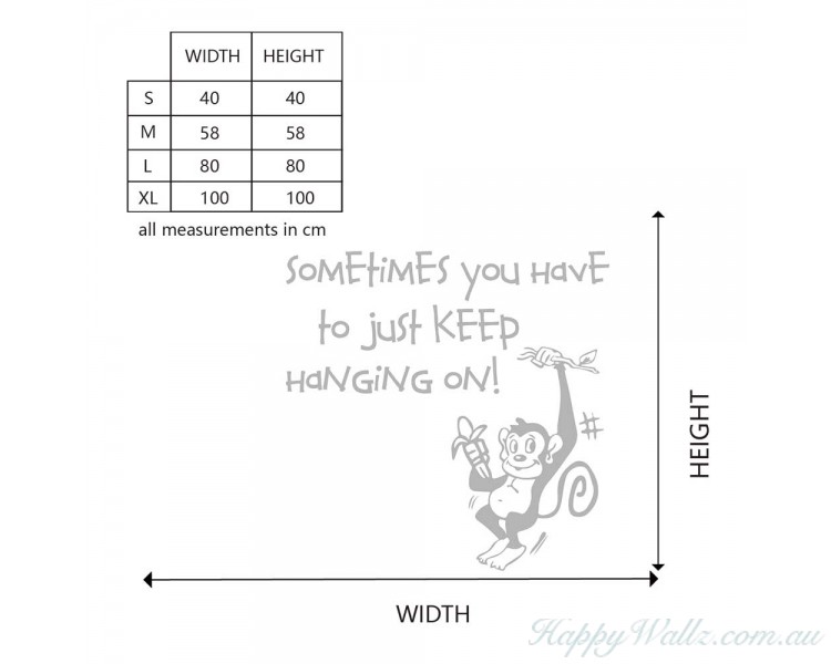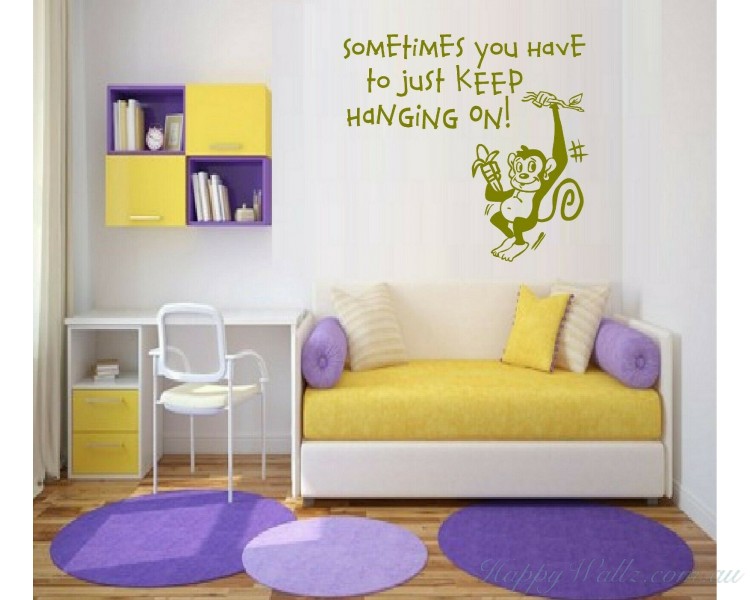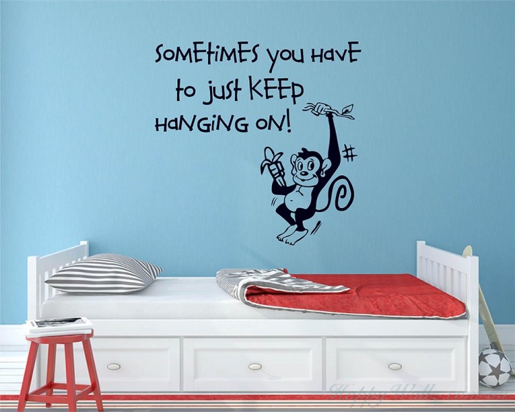 Sometimes You have to just Keep Hanging On inspired wall decal with a cute monkey hanging there is a fun addition to your home decor.