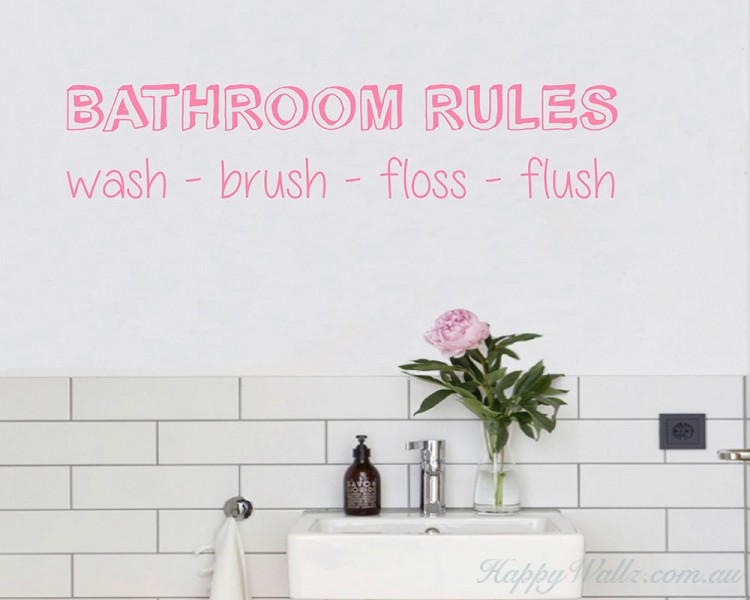 "Bathroom Rules -- wash, brush, floss, flush." You may have such a quote decal in your bathroom to have some fun.