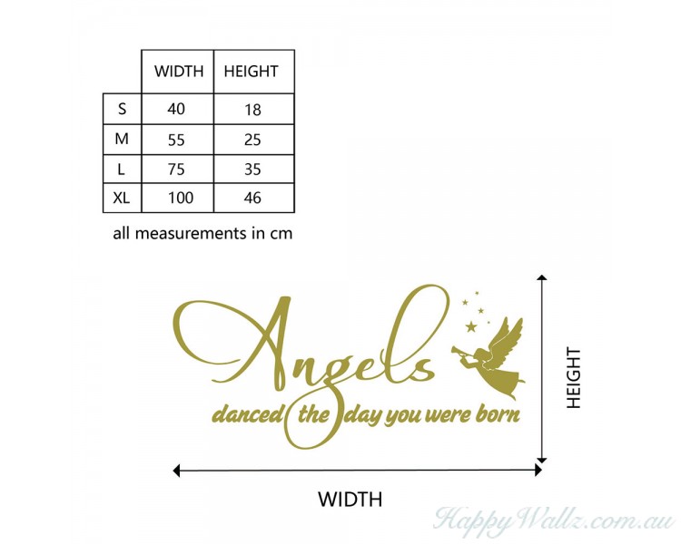 "Angels danced the day you were born" Quote with angel and stars decal.