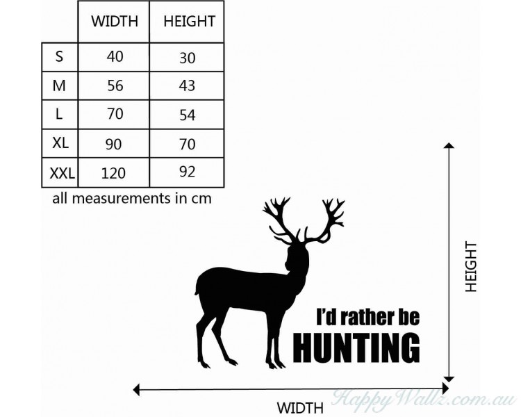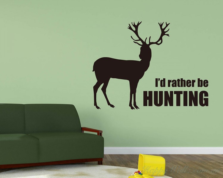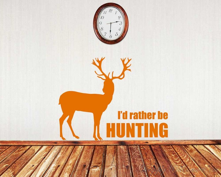 This wall decal is about a deer with the quote "I'd rather be hunting."