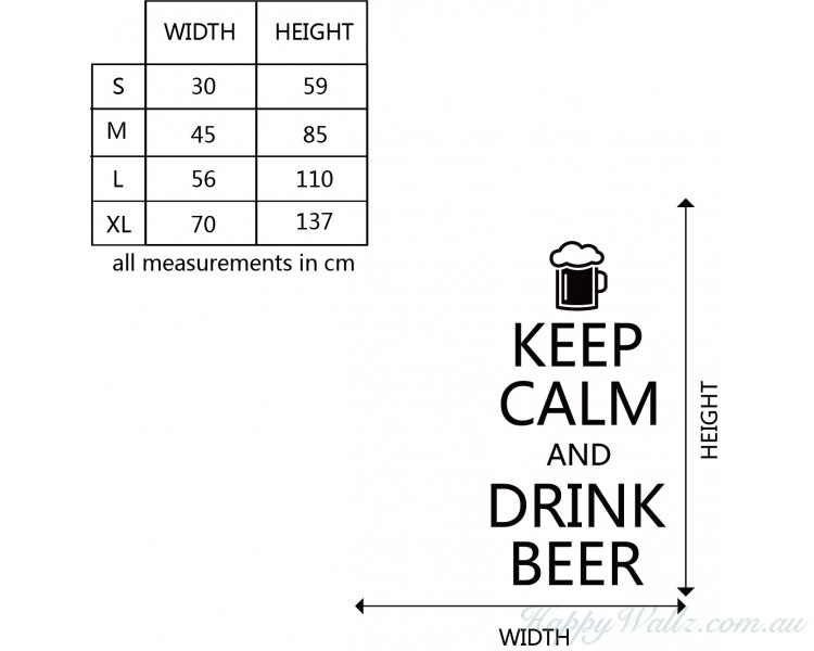 This wall decal is a kind of quote wall decal. The quote is: Keep Calm and Drink Beer.