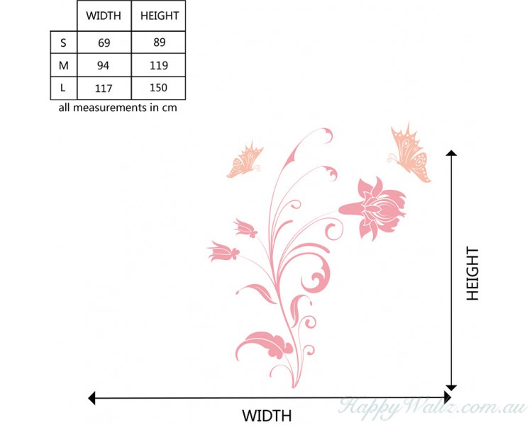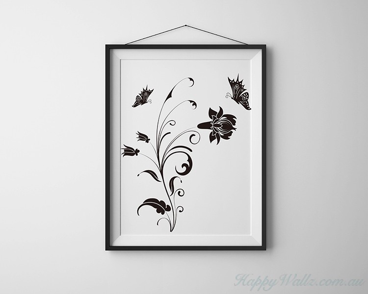This wall decal is about beautiful flowers on the branches, and around the flowers there are some butterflies flying around.