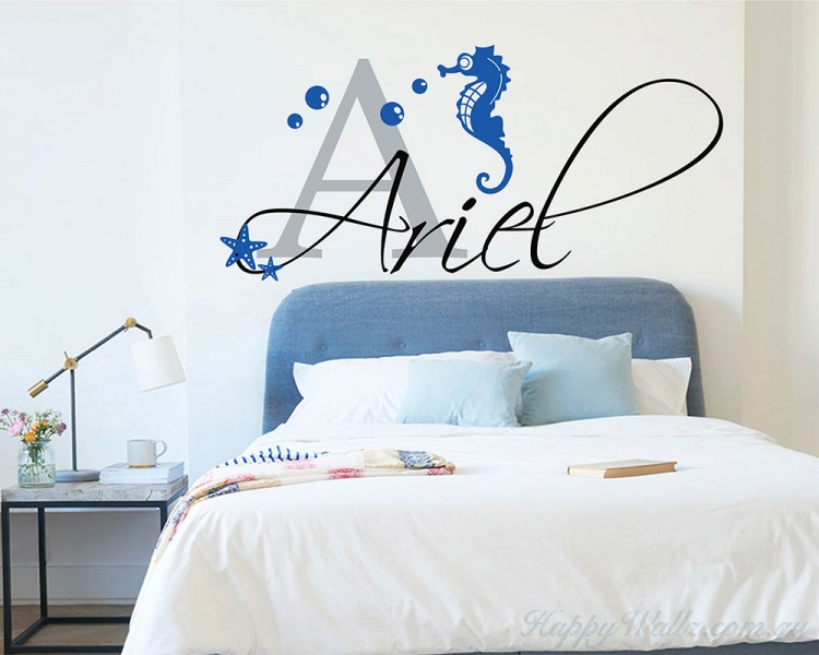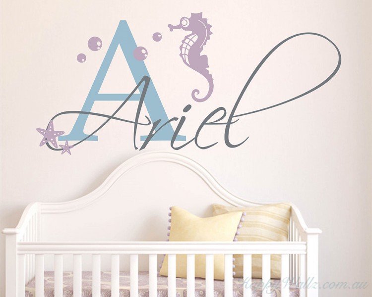 Personalize your child's room with this adorable seahorse theme children's name wall decal.