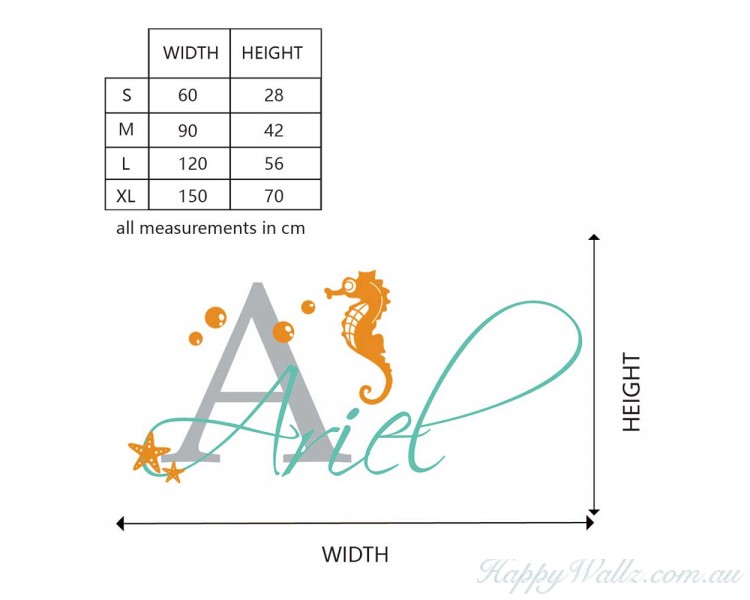 This personalized name decal with seahorse & beach accents will fit nicely above your little ones bed.