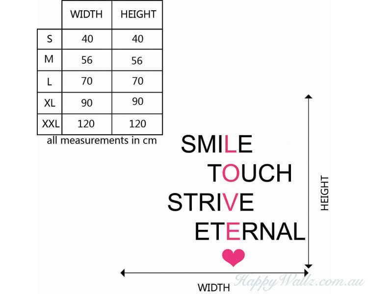 "Smile, touch, strive, eternal."