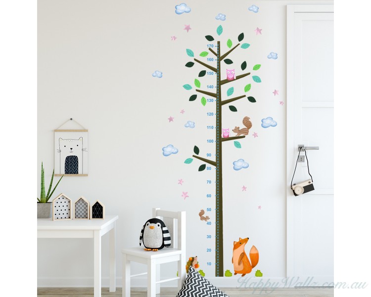 Height Chart Measure Scale Decor Zoo Animal Owl Tree Growth Chart Kids Nursery Baby Room
