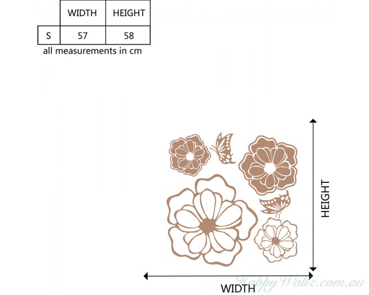 This wall decal is about a set of 6 flowers in different style and sizes.
