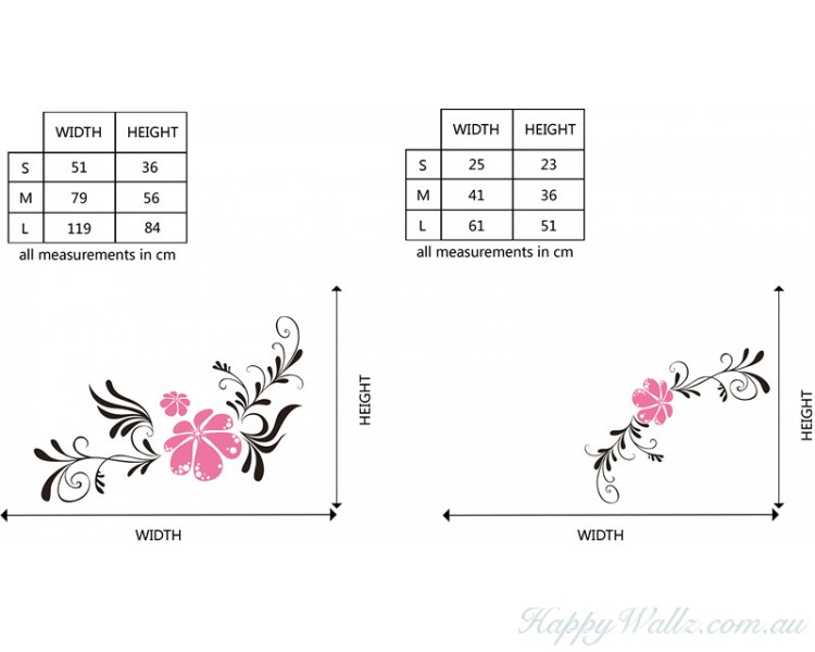This wall decal is about 2 parts of flowers with leaves. You may put them as bidiagona or anyelse as you like.
