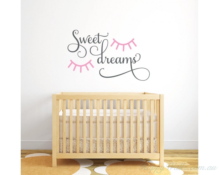 Sweet dreams with sleepy eyes above crib nursery decal.