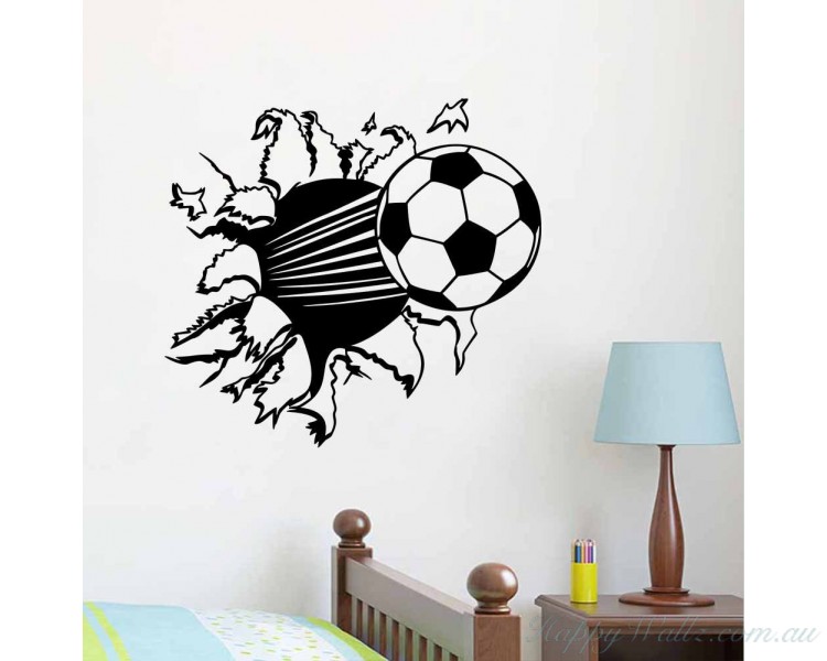 Bring fun to your home. This Soccer Ball Hit Break Through Wall decal would be perfect in your kids room.