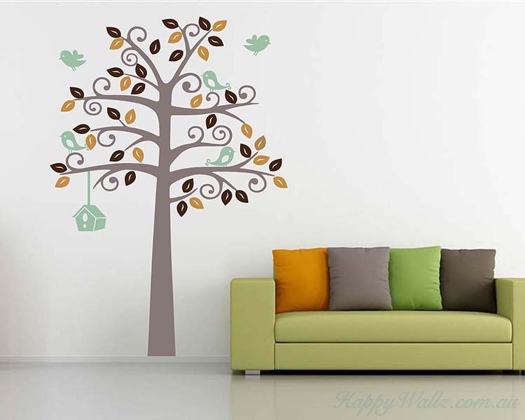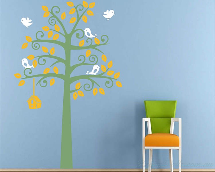 This wall decal is about a tall tree with some leaves and birds. And what is special, you may have some shelves on the branches.