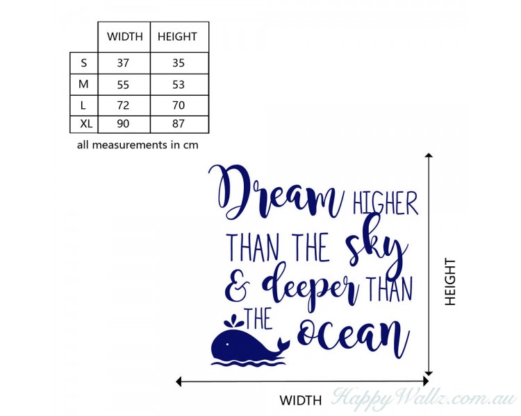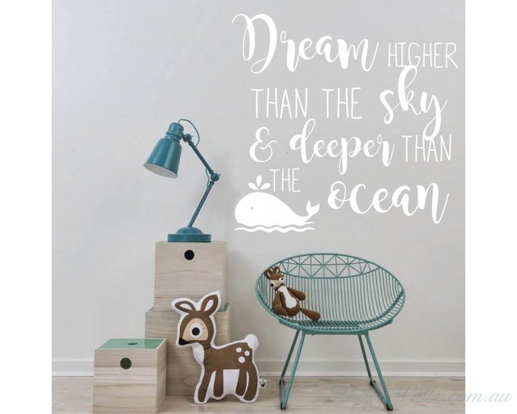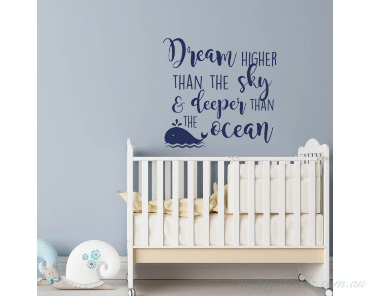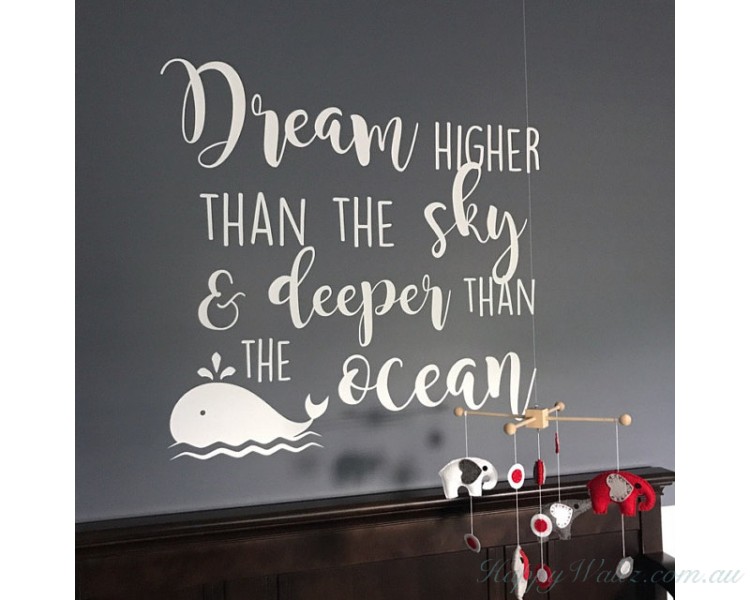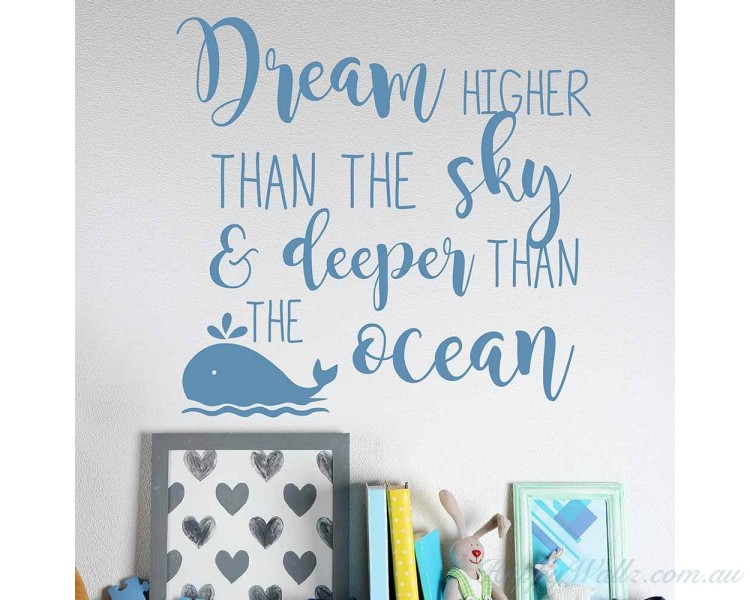 Dream Higher Than The Sky And Deeper Than The Ocean Wall Decal Inspirational Quote- Nursery Wall Decal- Wall Decal Kids- Family Decor